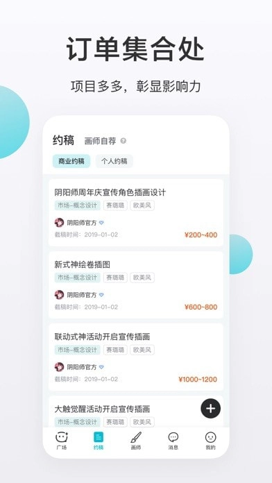 画加是一款专注于二次元创作领域的约稿平台,一直把保障用户安全与权益当作核心要务,打造了完善可靠的交易和交流环境。平台的订单集合板块里,每天都会有大量不同类型的约稿项目发布,涵盖插画绘制、角色设计、漫画分镜、周边设计等多种类型,这些丰富的项目资源为画师们提供了广阔的创作空间和商业机遇。此外,画加还专门设置了画师自荐功能,画师们能借助这个功能主动展示自己的优秀作品,这样不仅能大幅提升作品的曝光率,还能为作品开辟更多展示途径,让更多有需求的客户发现自己的才华。