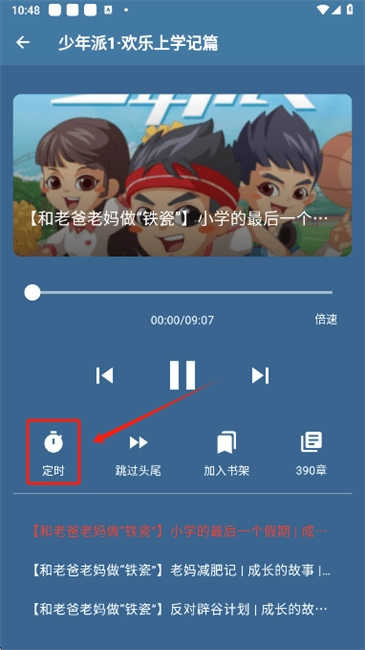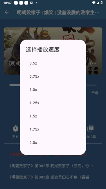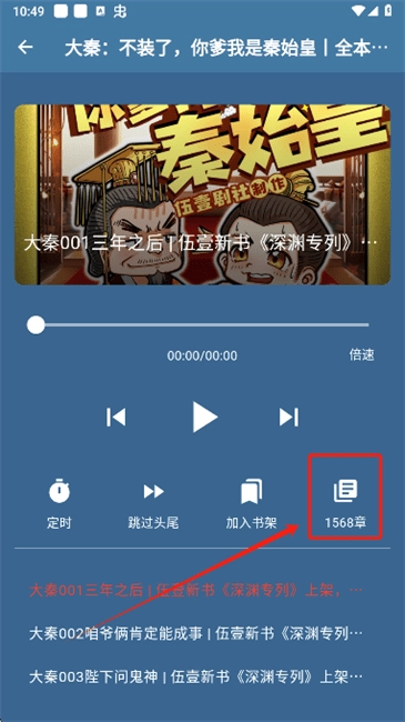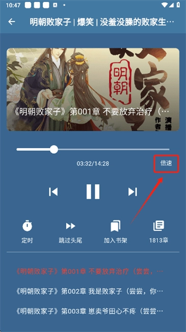 历史记录:播放过的书籍都会有历史的记录,打开的时候会接着上次播放时间来播放。