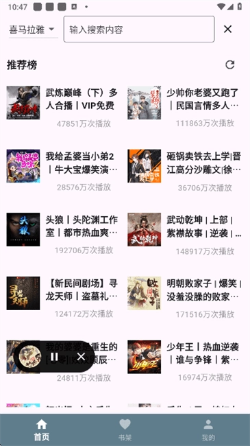 书架管理 :将喜欢的书籍加入书架,自动记录播放进度,方便下次继续收听。