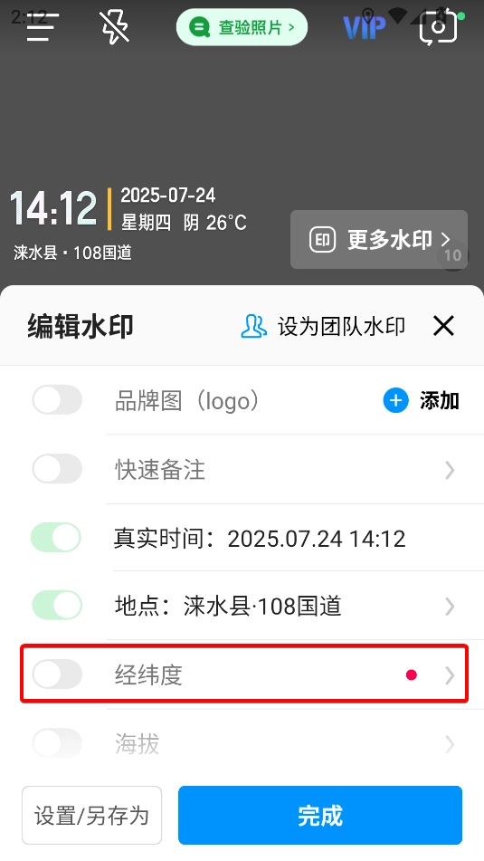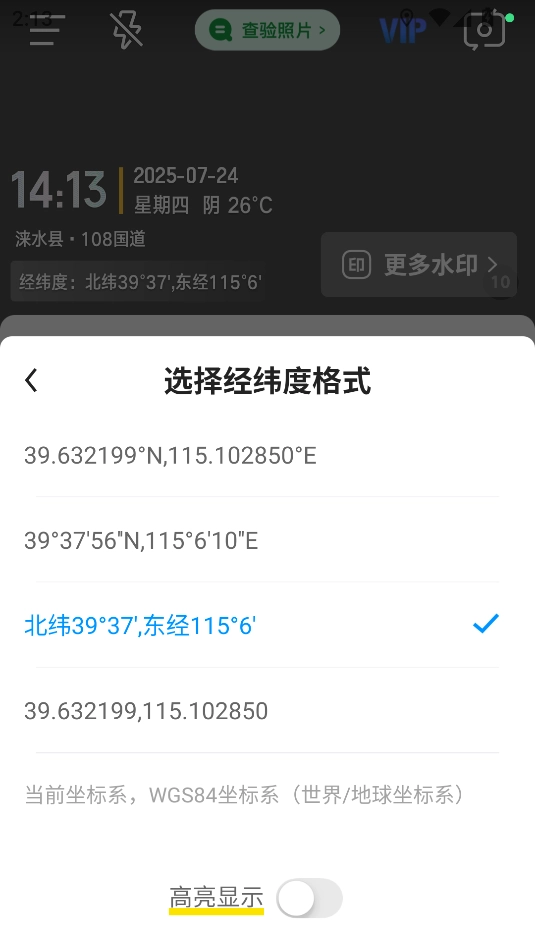 2、点击左侧按钮可开启经纬度显示功能,点击右侧箭头能够设置经纬度的格式